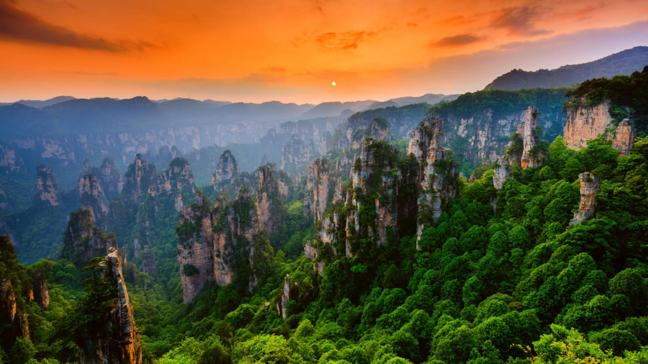 • Гора «Аватар-Аллилуйя» (парк Чжанцзяцзе) — фантастические пейзажи каменных столбов, ставшие прообразом мира фильма «Аватар». Во время прогулки вы увидите парящие смотровые площадки, живописные скалы и панорамы, словно сошедшие с инопланетных пейзажей.